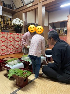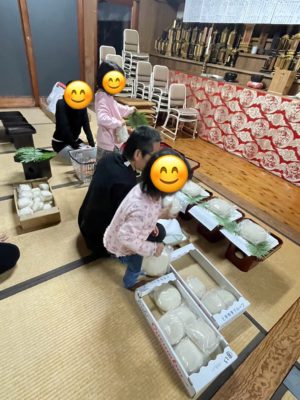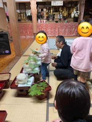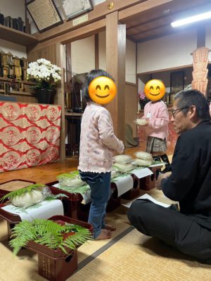 お寺にいらしていた子供さんやママさんがお供物のお手伝いをしてくださいました。